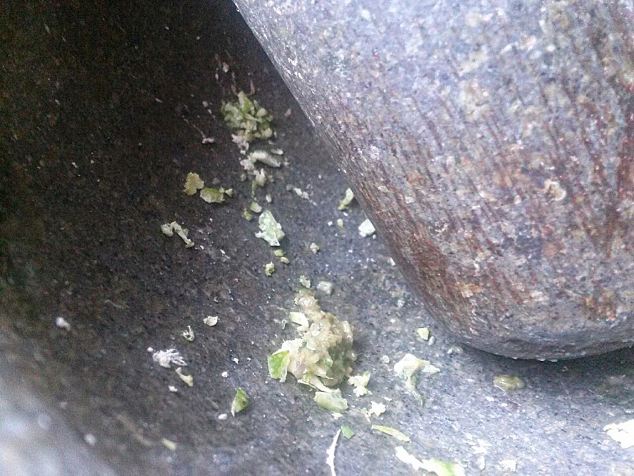From then on when I offered to help with dinner she would point to the mortar and pestle, giggle, and hand me the knife to chop vegetables. Point made.